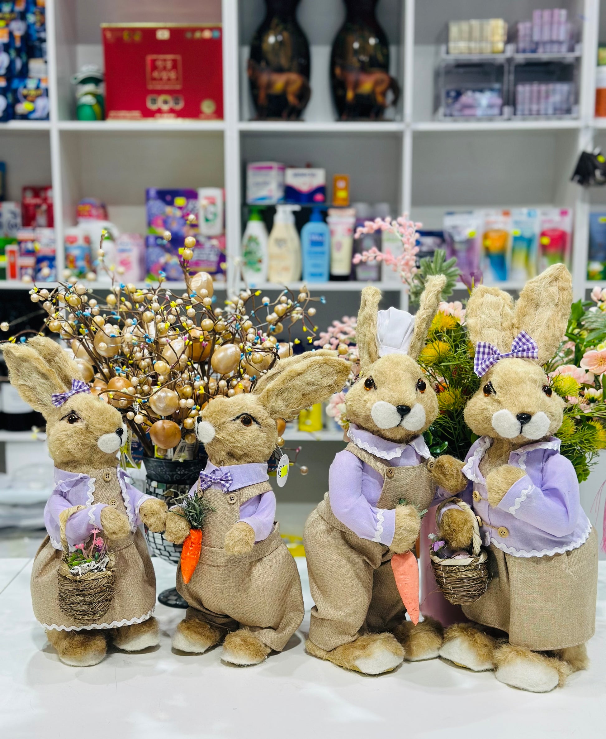 Introducing Kayla and Kyle, the adorable straw bunnies that will add a touch of charm to any room. Made from high-quality fabric, these bunnies measure at 18x17x47cm and are perfect for cuddling and decoration. Bring some playful spirit to your space with these lovable companions.